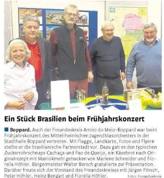 Hier zeigen wir die lebendige Partnerschaft zwischen Boppard und Arroio do Meio in Brasilien. Durch gegenseitige Besuche und intensiven Austausch sind über die Jahre Freundschaften entstanden, die Völkerverständigung fördern und die Verbindung unserer Kulturen sichtbar machen.